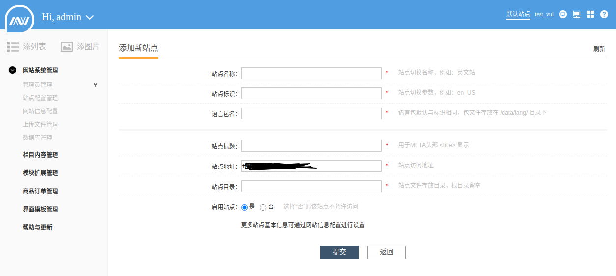 这个漏洞是用户登陆之后,在新建网站页面输入网站信息时,程序并没有对用户的输入进行有效过滤,使得用户能够注入脚本实现任意代码执行。