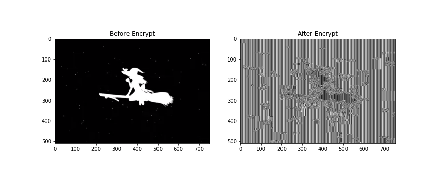 对于相同的两段明文,很显然的,加密之后的结果,这就带来了泄漏明文消息的风险,对有较多重复内容的明文来说尤其严重,例如图像中常有的纯色色块、音频中的静音等,都会在密文中表现为重复的同样的数据块。一个潜在的攻击者对密文进行分析,即使他无法对密文进行解密,也能够分析出其中一些潜在信息。如图所示,尽管图片经过了加密,但是仍然可以看出其大致轮廓。