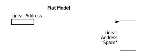 平面内存模型中内存是单独一段的连续的地址空间。这个地址空间也被叫做线性地址空间 (linear address space)。代码、数据和栈都在这个空间内,这个空间按照字节来寻址,其中的一个地址就是线性地址 (linear address)。