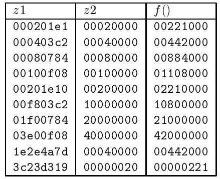 在 Block TEA 算法中,我们记函数,, 为明文。这里 并不是一个满射函数,也就是存在。下面是论文中给出的几个碰撞的例子。