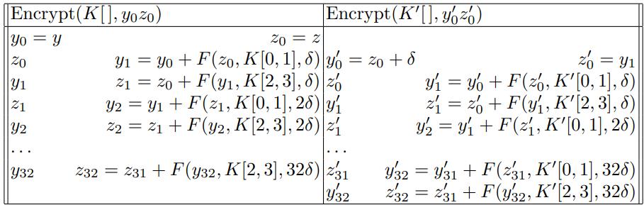 为了避免上面提到的攻击方式,Needham 和 Wheeler 随后提出了扩展的 TEA 算法 (Extended TEA, XTEA)[7]。