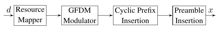 广义频分复用 (Generalized Frequency Division Multiplexing) 最早在 [2] 这篇论文中提出,相较于 OFDM,GFDM 的 OOB 泄漏更低,PAPR 更低,同时可以灵活利用空闲频带资源,和 MIMO 系统的兼容性也更好。