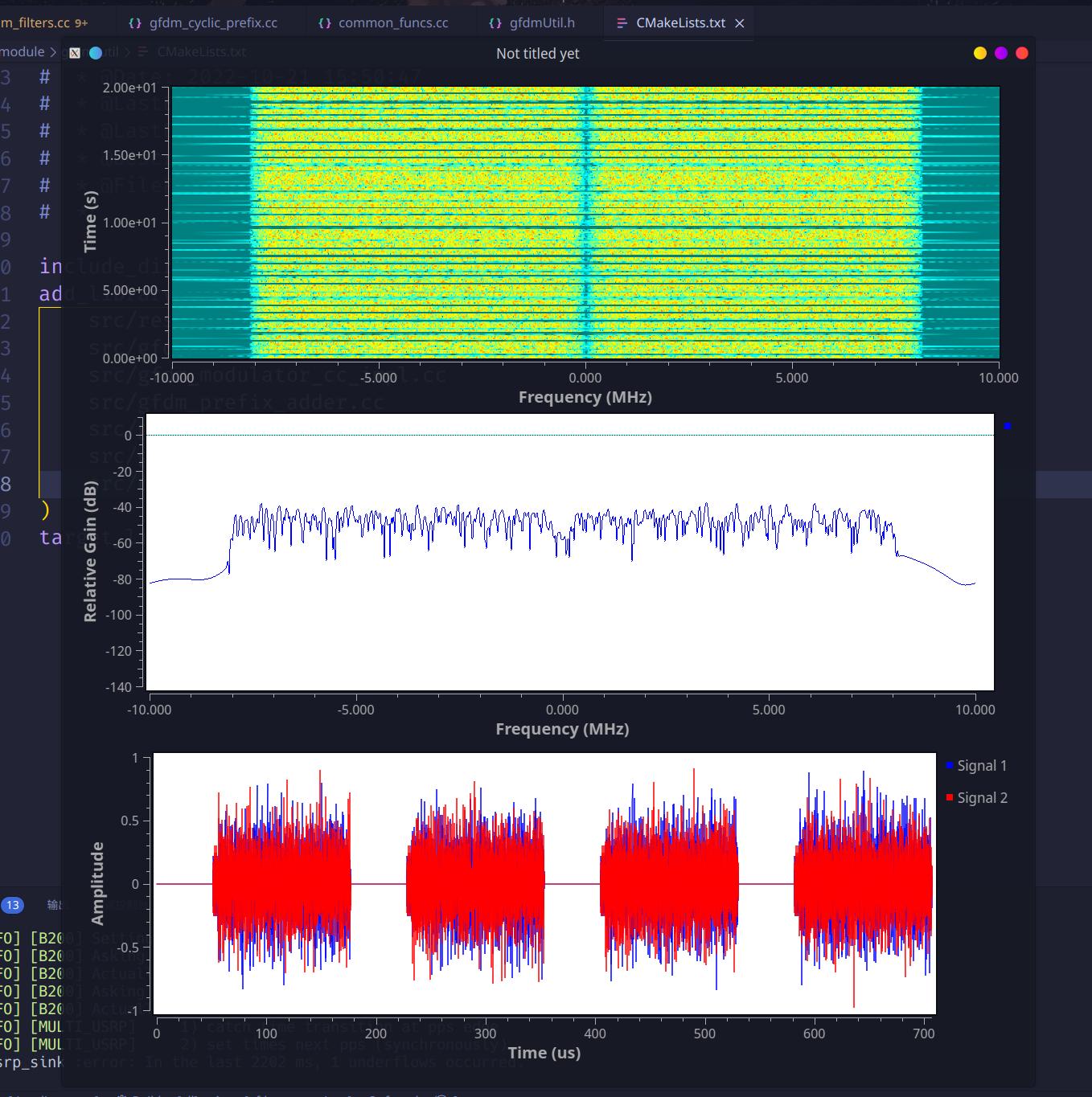 没做接收部分大概主要也就是因为老师说这个就是一个练手的小项目(虽然也费了不少力气),还有一个就是希望利用 GFDM 能够在特定频点生成信号的特性,可以去做一个类似选择性干扰器之类的东西(这个真的是想到一块去了)。