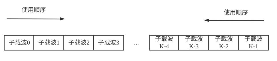 如果我们有四个子载波,使用其中的三个,那么就是按照这样的顺序来: