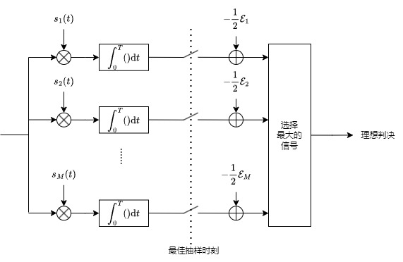 对于m∈{1,2,...,M},ML 接收机结构如下图所示: