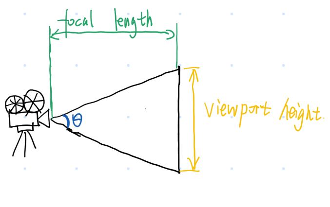 我们采用一个视场角,用于表述摄像机所能看到的垂直视野范围。这样,我们可以计算得到视口的高度和宽度。