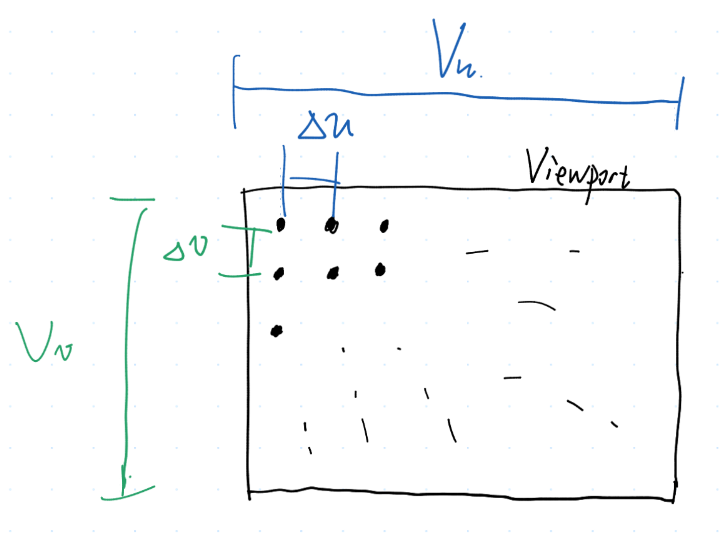 在视口上,像素点的数量和需要输出的图片尺寸是保持一致的,但是很明显我们需要去计算视口的尺寸以及其中像素点的距离。