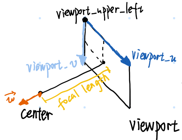 center - w * focus_dist - viewport_u / 2.0 - viewport_v / 2.0; | |